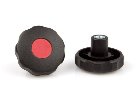 Pokrętło gwiazdowe z nakrętką zatopioną w tworzywie D-50mm M10, wersja light, zaślepka RAL3000 (czerwony ognisty)